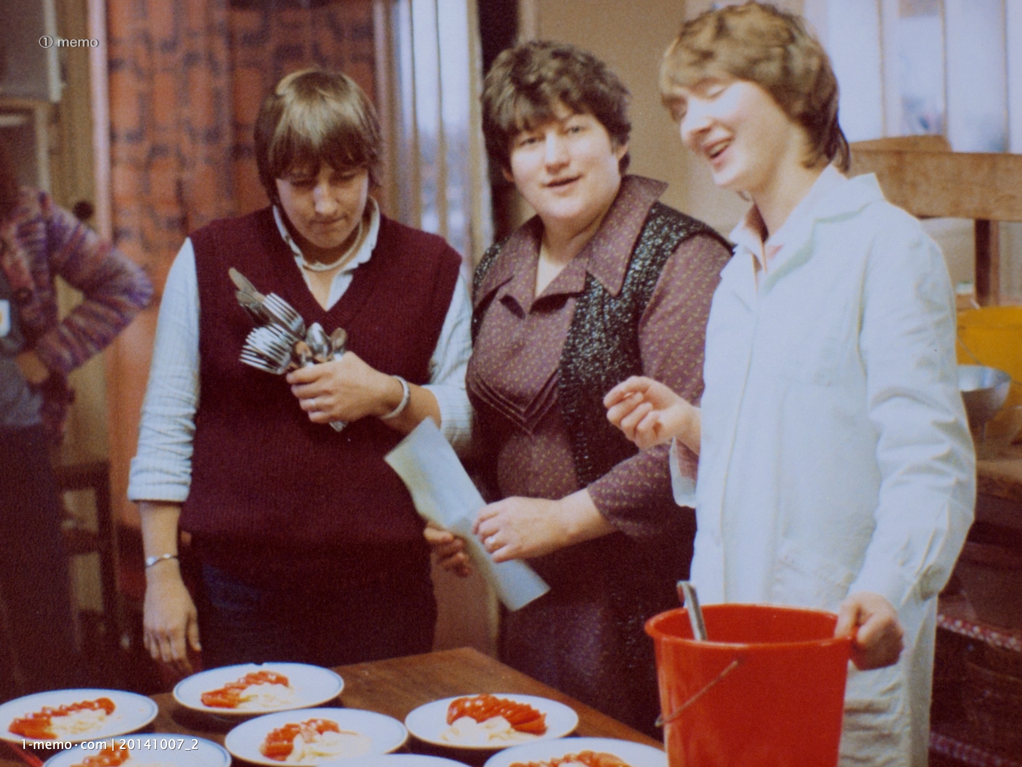 Normandy Kitchen | 20141007 | 1-memo.com | Peel apples – probably for pie, the Norman Tart – by the kitchen aid in the Hôtel des Fleurs, Autumn 1980, in the village Ger in Normandy, Manche, France. A LES ROUTIERS hotel in the 1970-80s – now The Jug & Jazz.