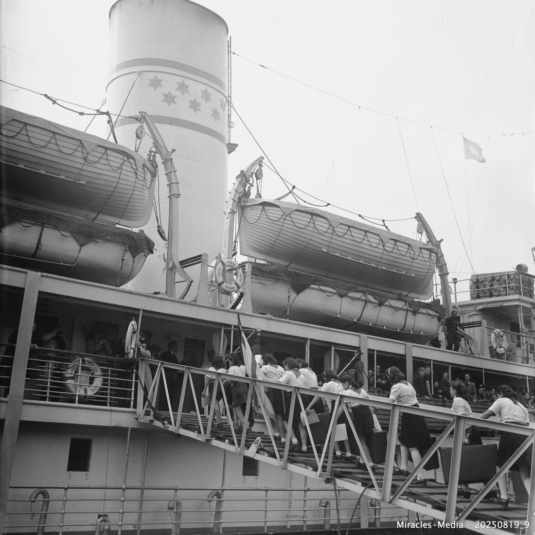 11. Children embark for the journey to Haifa, Israel, on the first Jewish ship – the Negbah – at the quay in Amsterdam, 6 Oktober 1948. Miracles•Media • 20250819_9 . Source : Dutch National Archive (Photo by Ben Merk | Anefo). URL http://hdl.handle.net/10648/a8be2e80-d0b4-102d-bcf8-003048976d84