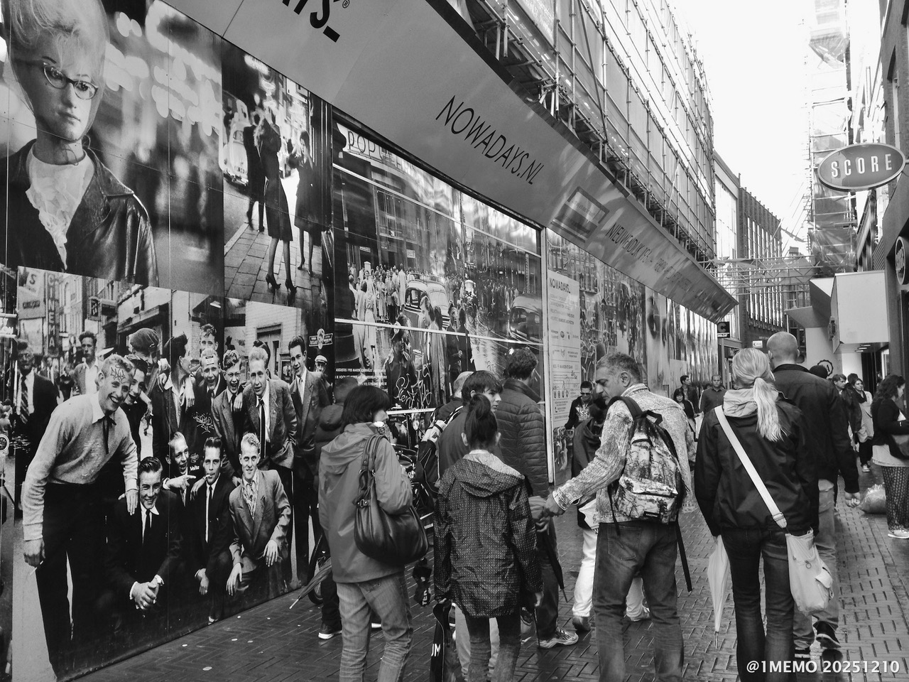 Ed van der Elsken’s photo’s outside in the Nieuwendijk street in Amsterdam during photo expo : Amsterdam! Ed van der Elsken by Stadsarchief , August 2014.