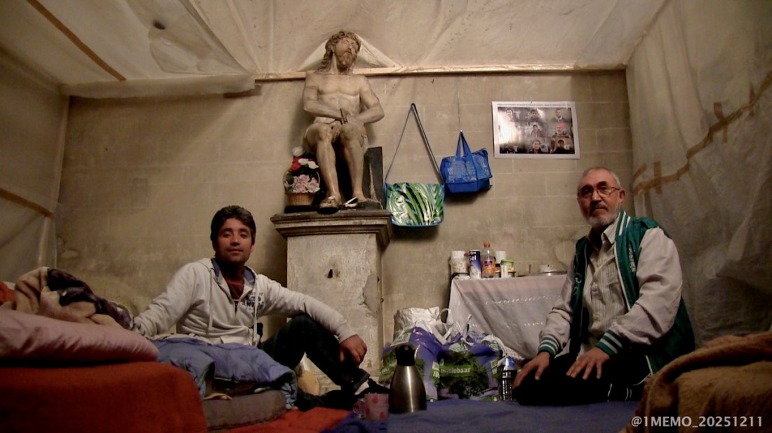 Tea is served in one of the tents of the Afghan refugees camp inside the Béguinage church in Brussels, April 2014. Video still.