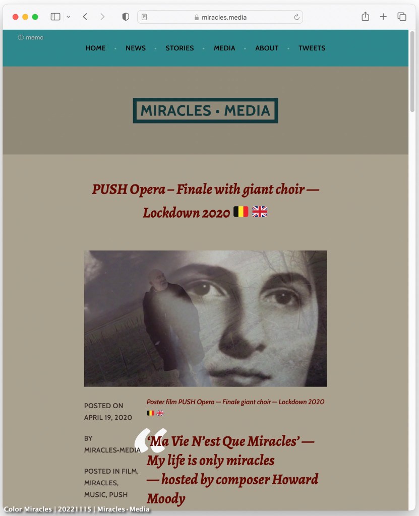 Miracles.Media Site | 20221110 | Miracles•Media | Finally getting the site in shape , added Pages (About, Support, Colophon) including the info, and new : Donation options — developed recently. Print #2 (Edition 1) of Viviane’s Story on the way … expected tomorrow — and, edition 2 publication hopefully later this month.