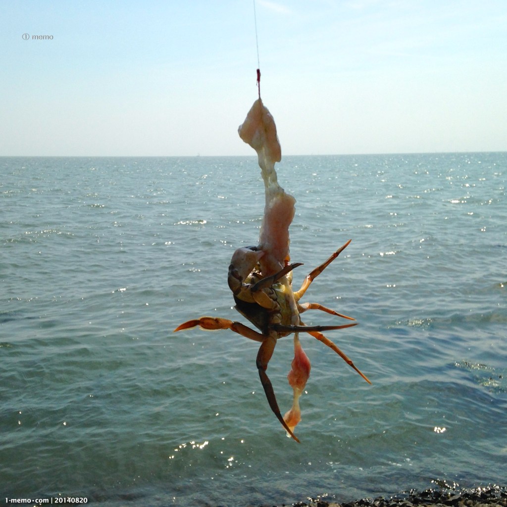NL – Krabben vangen met een reepje spek-ontbijtspek, ter grootte van een of enkele vingers , vastgeknoopt aan een touwtje – de krabben blijven zich vastbijten als je ze ophaalt …. en met goed schudden gaan ze er weer af ..(Terschelling) .