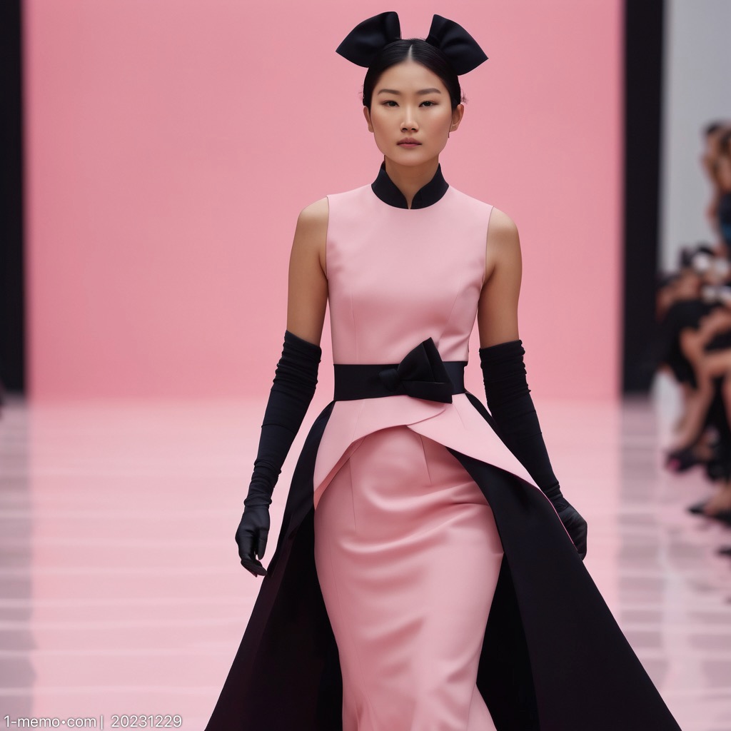 Look book of today’s runway show : an elegant Dior-like two piece dress from our talented designer Doyeon, created using generative AI.