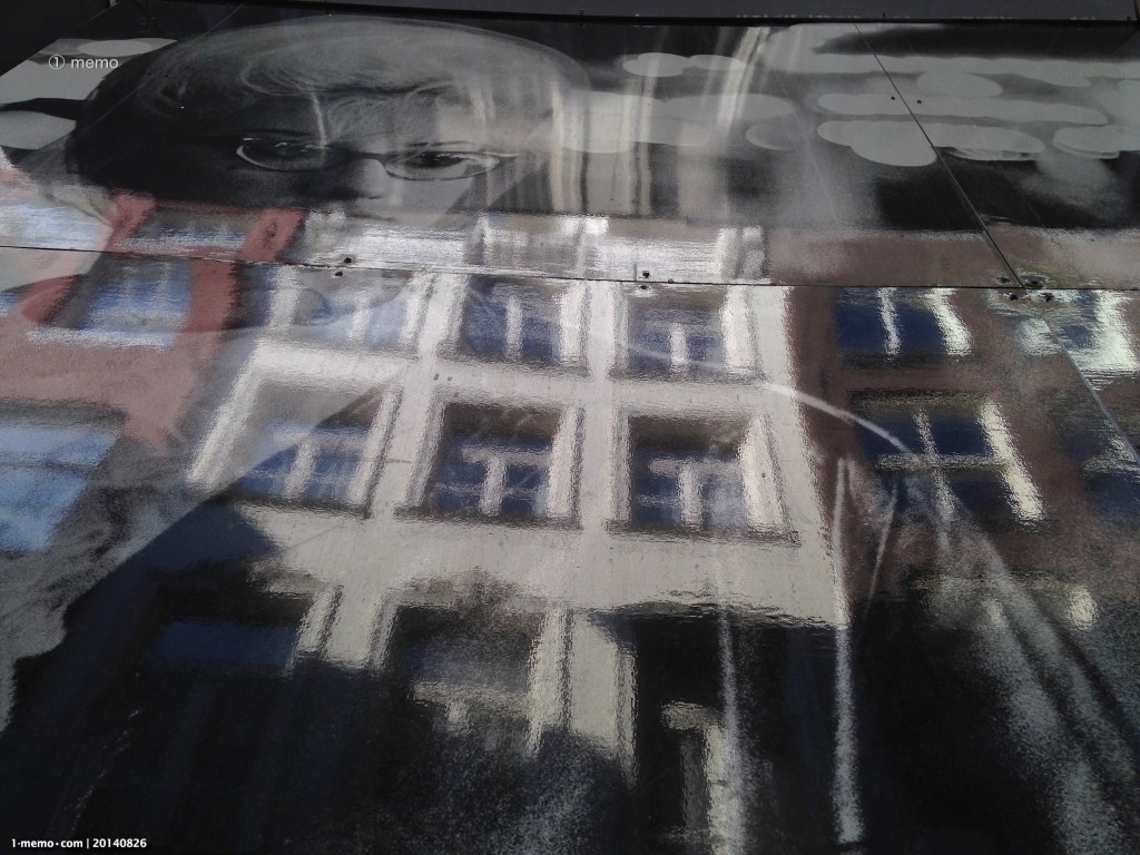 Cottton Candy Girl | 20140826 | 1-memo.com | The Amsterdam Nieuwendijk street now reflecting a large print of one of Ed van der Elsken’s early 60s photo’s showing ‘suikerspinmeisje’ girl. | TakeNode ID 331da0c7-fe29-42a0-b590-6832f4256ee4