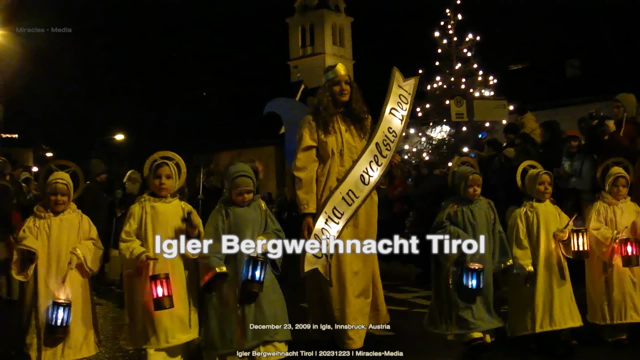 Een indrukwekkend, stemmig, schouwspel, de traditionele berg-kerstoptocht in het centrum van Igls, bij Innsbruck (Oostenrijk) waarbij rond 200 inwoners prachtig verkleed als kleine en grote engelen, nachtwachters, boeren, herders en herdersjongens, alsook als Maria met het kerstkind Jezus in een traditionele slee begeleid door Jozef te voet, door het dorpscentrum gaan met lantaarns en meegevoerde dieren. De avond van 23 december 2009.