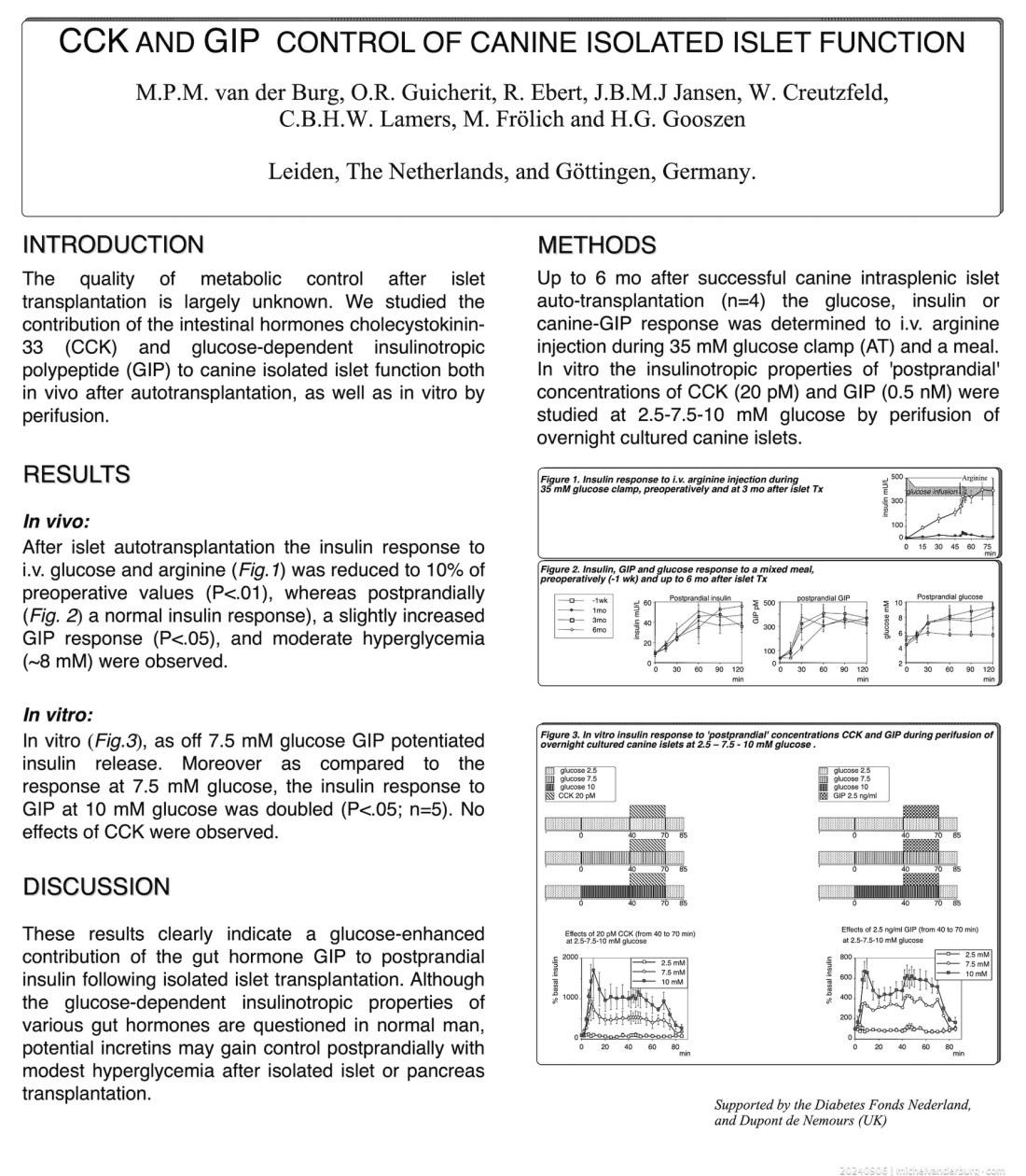 1. Van der Burg MPM, Guicherit OR, Ebert R, Jansen JBMJ, Creutzfeld W, Lamers CBHW, Frölich M, Gooszen HG. CCK and GIP control of canine isolated islet function. 3rd International Congress on Pancreatic and Islet Transplantation, Symposium on Artificial Insulin Delivery System, Lyon (France) June 6–8, 1991.