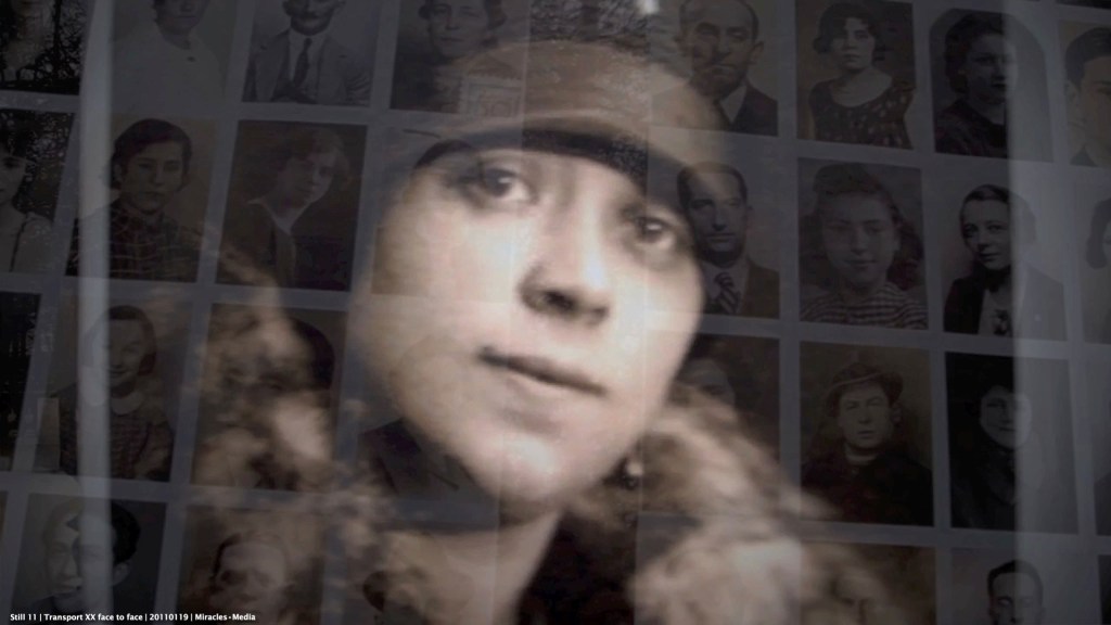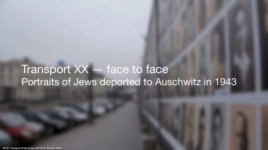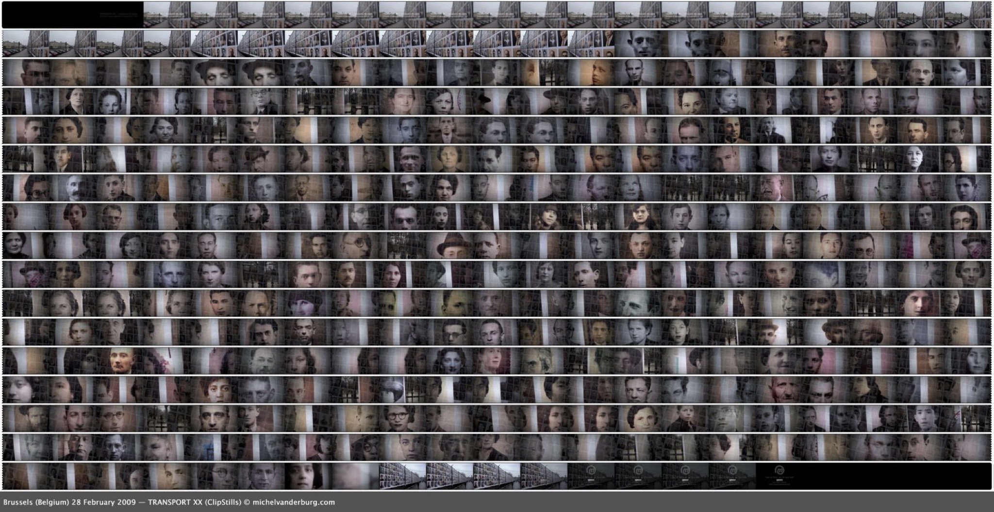 Une vidéo de l’installation “Transport XX” – une série de portraits photos des juifs qui devaient être emmenés de Malines à Auschwitz le 19 avril 1943 (organisée par le BELvue Musée à Bruxelles – 27 janvier au 15 mars 2009 – le long du Parc Royal juste en face du Palais Royal de Bruxelles).