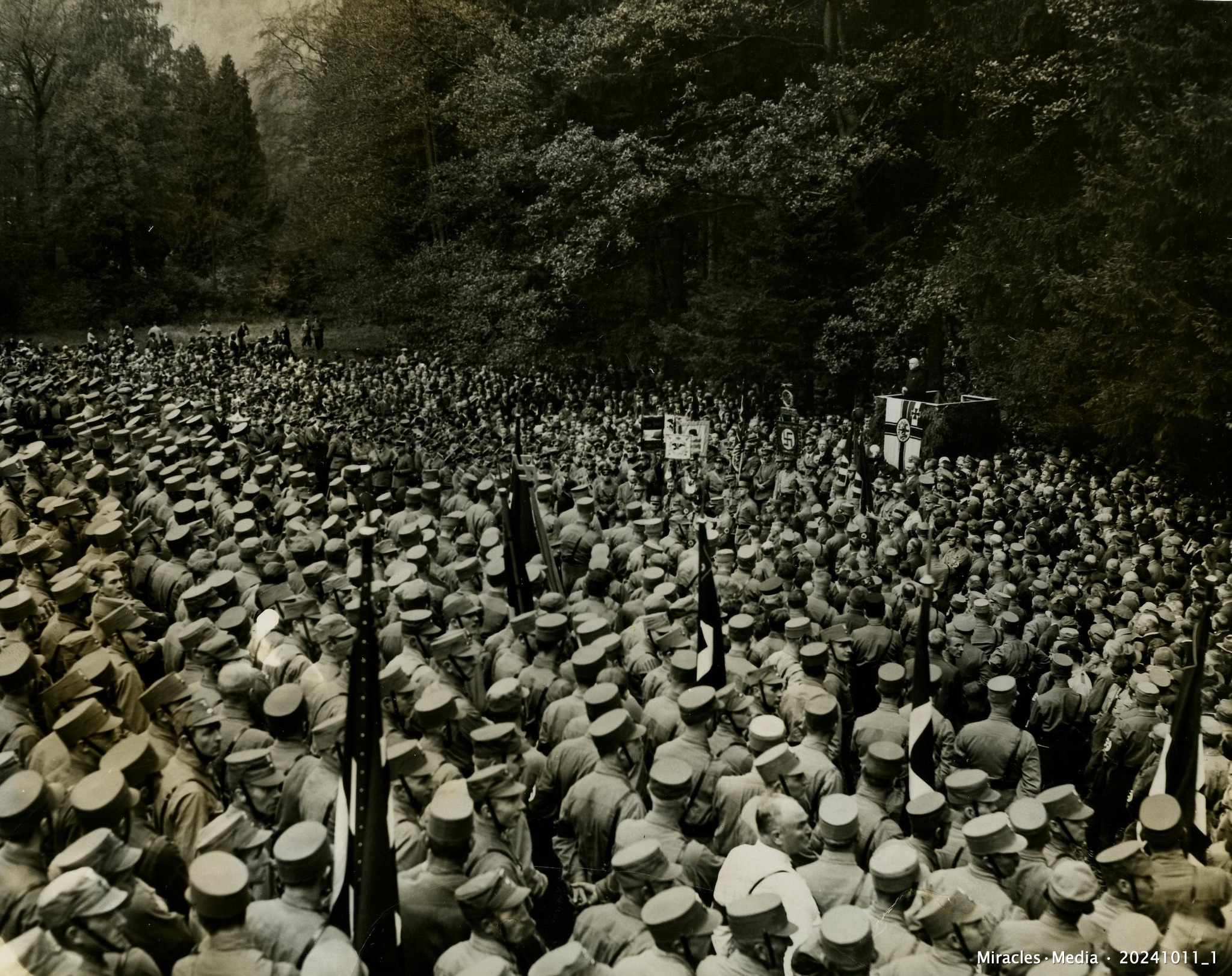 Founding of the ‘Harzburger Front’ in Bad Harzburg, October 11, 1931 – an alliance between right-wing, nationalist, conservative elements and Hitler, to attempt to topple the Weimar government of chancellor Heinrich Brüning. The field service on the Kaltental-Wiese (meadow) in Bad Harzburg, with the Berlin Protestant preacher Bruno Doehring, on the platform (pulpit).