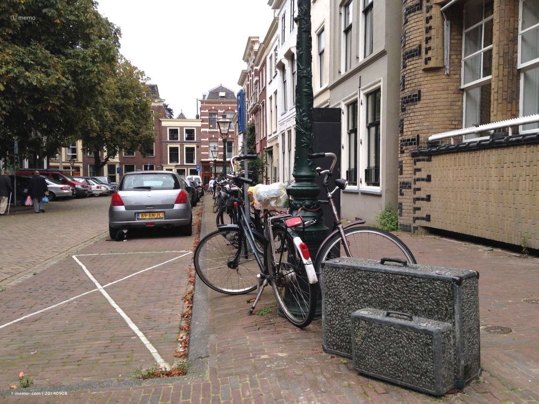 Left Luggage | 20140908 | 1-memo•com | Left luggage found last Saturday while walking in Leiden (Holland). ‘Bagage’ (Ram Katzir, 2010) in front of the former police station (Zonneveldstraat) where Jewish Leideners were gathered for deportation during World War II.