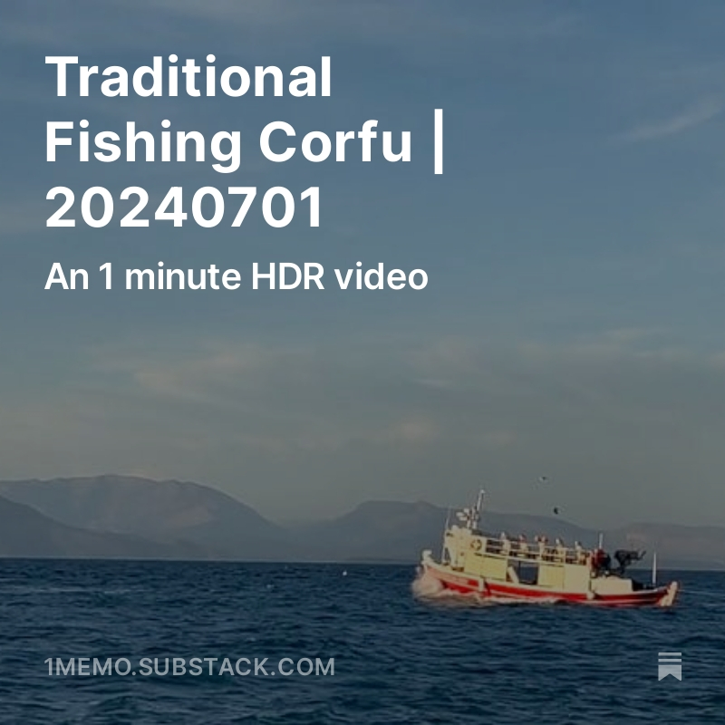 Uploaded yesterday’s HDR video (Traditional Fishing Corfu | 20240701) at 1memo.substack.com .